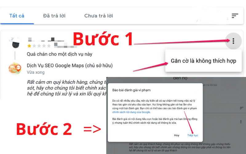 Báo cáo các đánh giá xấu với Google nếu chúng vi phạm quy định.