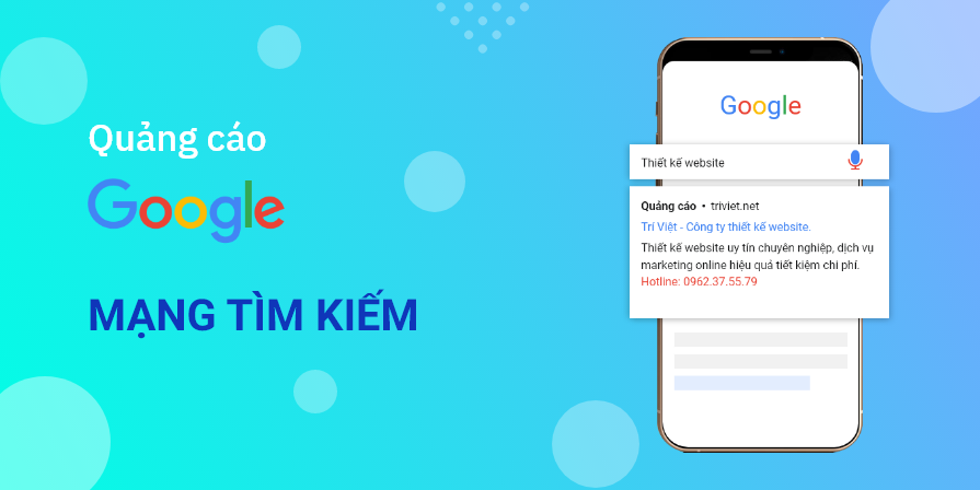 Mạng Tìm kiếm của Google là một nhóm các trang web và ứng dụng liên quan đến hoạt động tìm kiếm mà quảng cáo của bạn có thể xuất hiện trên đó. Khi bạn quảng cáo trên Mạng Tìm kiếm của Google, quảng cáo của bạn có thể hiển thị gần kết quả tìm kiếm khi có người tìm kiếm bằng các cụm từ liên quan đến một trong những từ khóa của bạn.